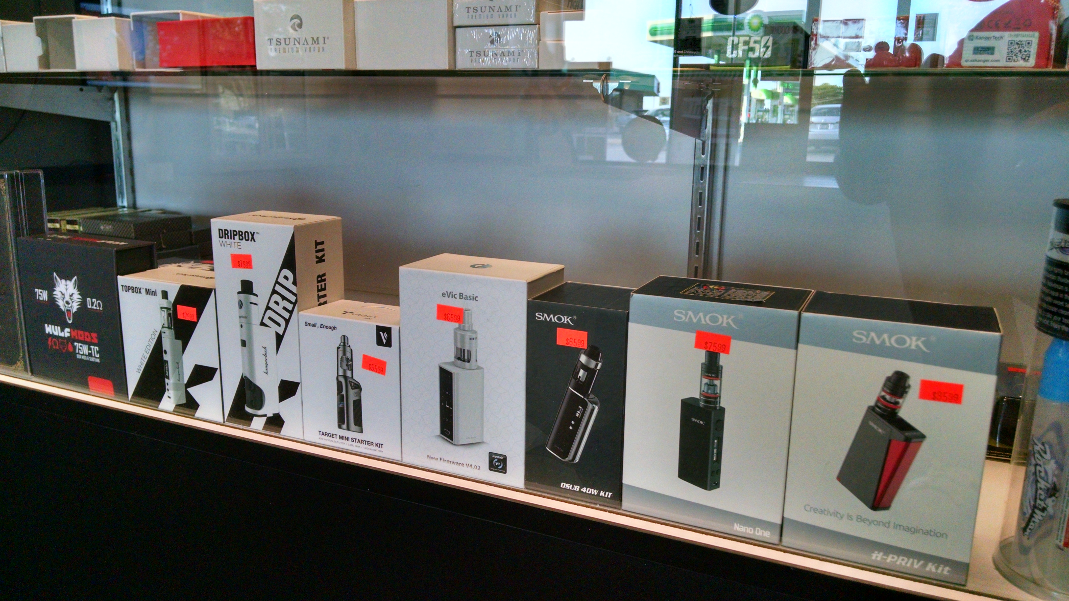 We have just received many more box mods after getting fairly low over Labor Day weekend. Brand names like Wulf Mods, Fuchai, Smok, JoyTech, Target and Kangertech are all here. Some mods come with built-in batteries which will make life much easier than having to worry about stocking up on 18650 batteries. Already have a bod mod and want a new tank? No worries on that end either. More of those came with this order. Prices range from $49.99 to $79.99 on most vaporizers and $19.99-$39.99 with tanks.