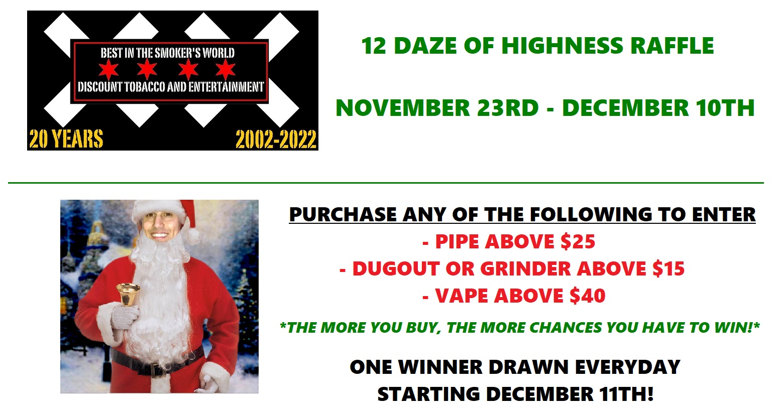 Fro Dog Clause is giving out one free gift bag full of goodies each day starting December 11th. The more you buy, the more tickets you can get to win. And yes, you can win multiple times. We will see you here.