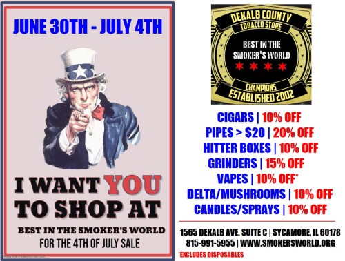 Five days of savings are coming at you beginning Friday, June 30th. Stop in to see us before you eat those burgers and chicken. We are open normal hours on the 4th as well. We will see you then.