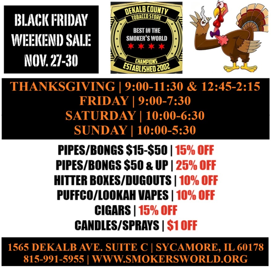 That’s right. For only the fourth time in 23 years, we are open Thanksgiving with limited hours. In addition, we will be open an extra half hour all weekend so you don’t miss out. All the details are in this ad. The champions of DeKalb County await your arrival this weekend!