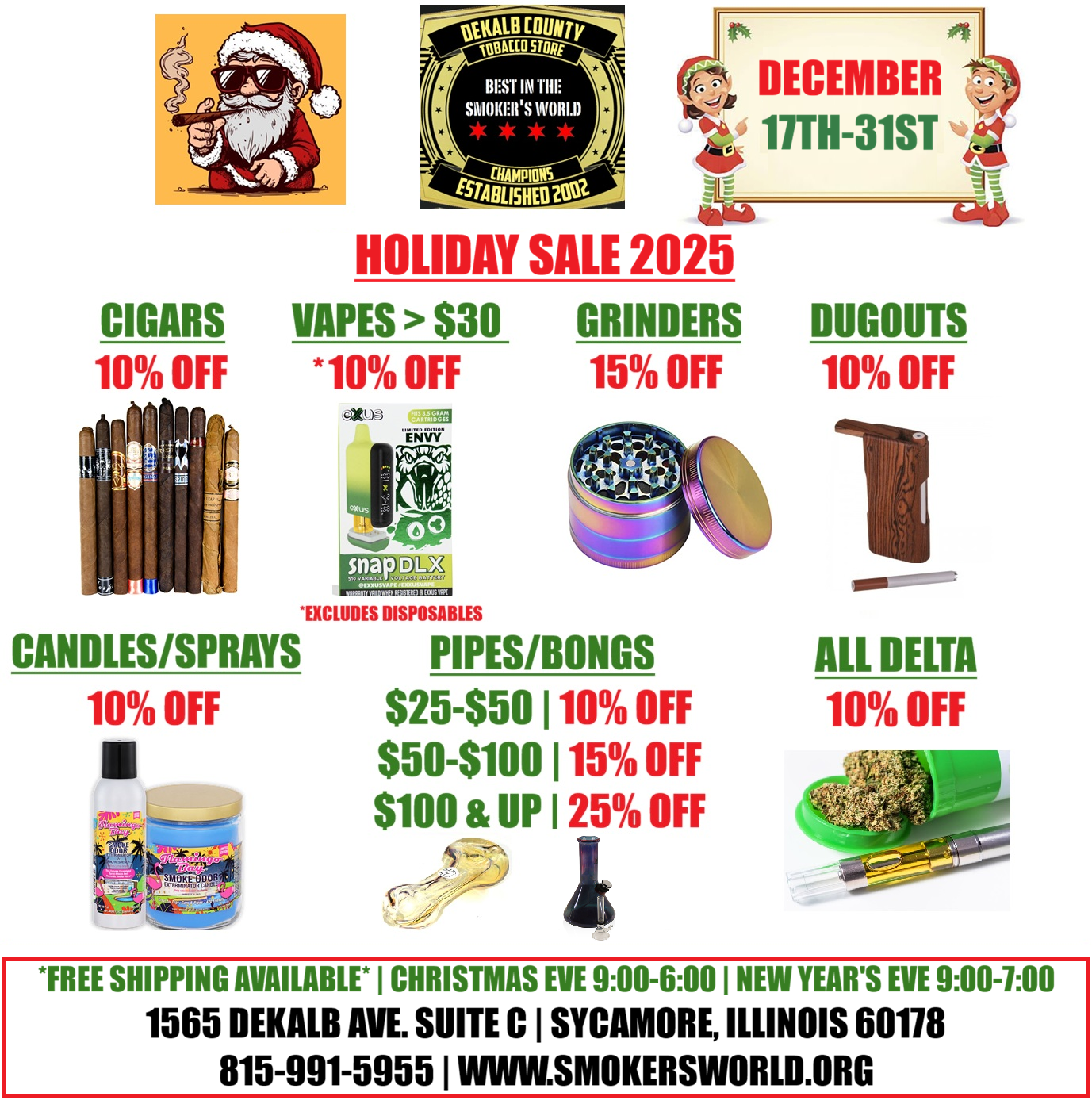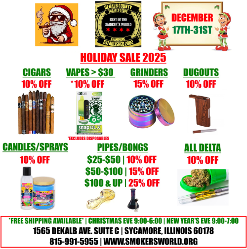 It’s the tradition that begins every December 17th. You get a week leading up to Christmas and a week leading up to the new year. Family stressing you out on the holidays? We have a bong available to keep you relaxed. All of your other Christmas gifts are available here as well. We will see you here!